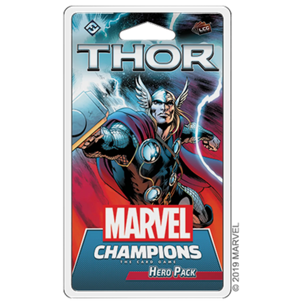 Like all Hero Packs, the Thor Hero Pack includes a fully-playable deck right out of the box that includes 15 Hero cards, 17 cards from the Aggression aspect, and 8 neutral cards. This deck allows you to harness the power of Thor, who is rewarded for engaging and dispatching villainous minions from the field!