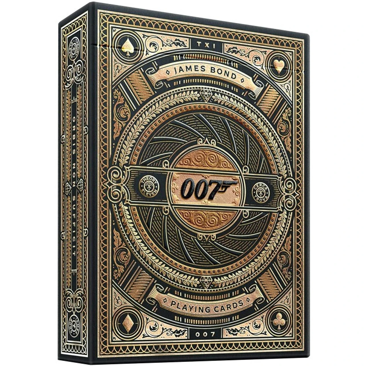 The box features two layers of gold foil, with a sculpted 3D emboss of the James Bond family crest.