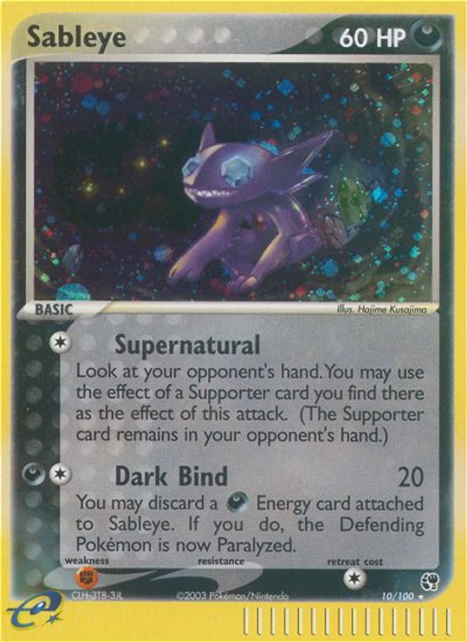 You may discard a Darkness Energy card attached to Sableye. If you do, the Defending Pokémon is now Paralyzed.