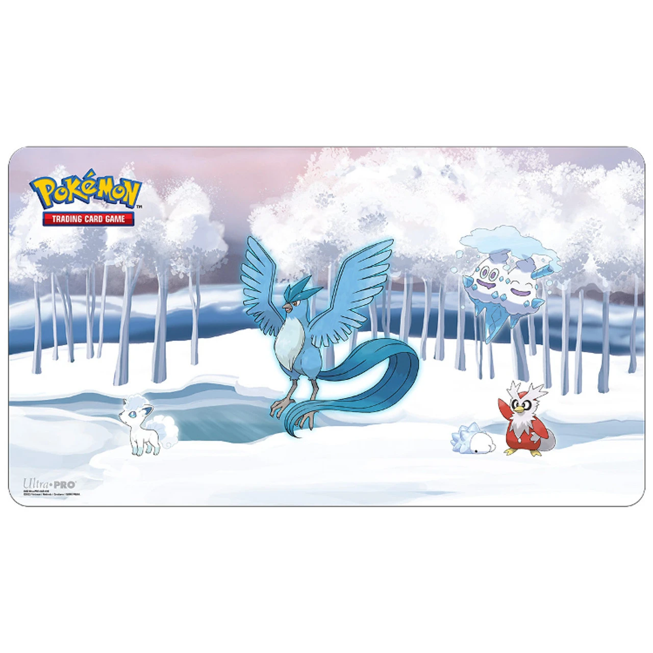 - Officially licensed Pokémon Trading Card Game Playmat featuring Articuno, Alolan Vulpix, Vanilluxe, Delibird, and Snom