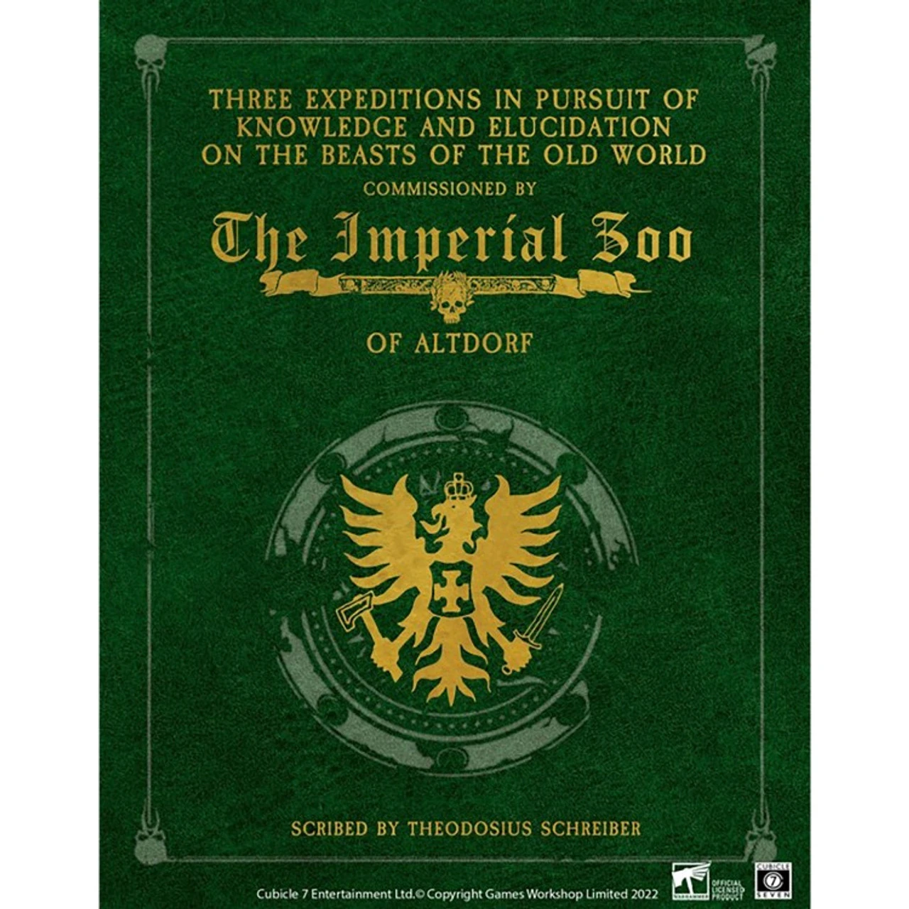 The Imperial Zoo Collectors Edition is designed to be as in-universe as possible, with a faux leather cover, embossed details, Spot UV to highlight even more detail and texture, and a gold foil stamp that would make the finest print presses in Altdorf proud.